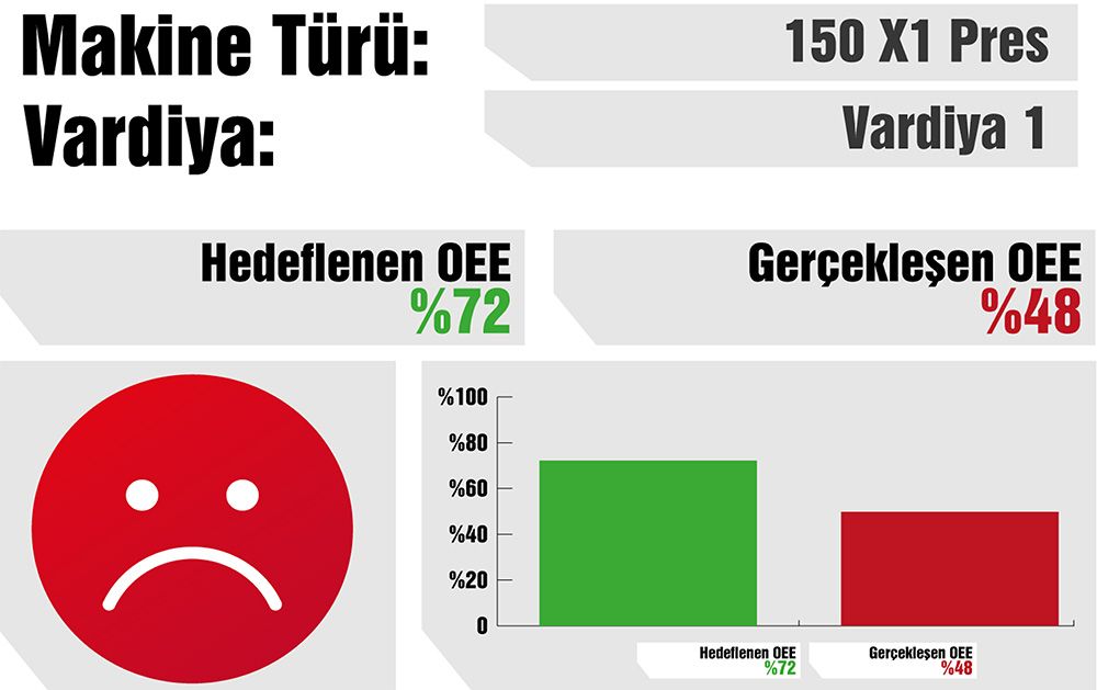 - Üretim miktarları, üretim saatleri, duruş süreleri, hurda oranları gibi KPI'ların anlık takibi yapılabilir.