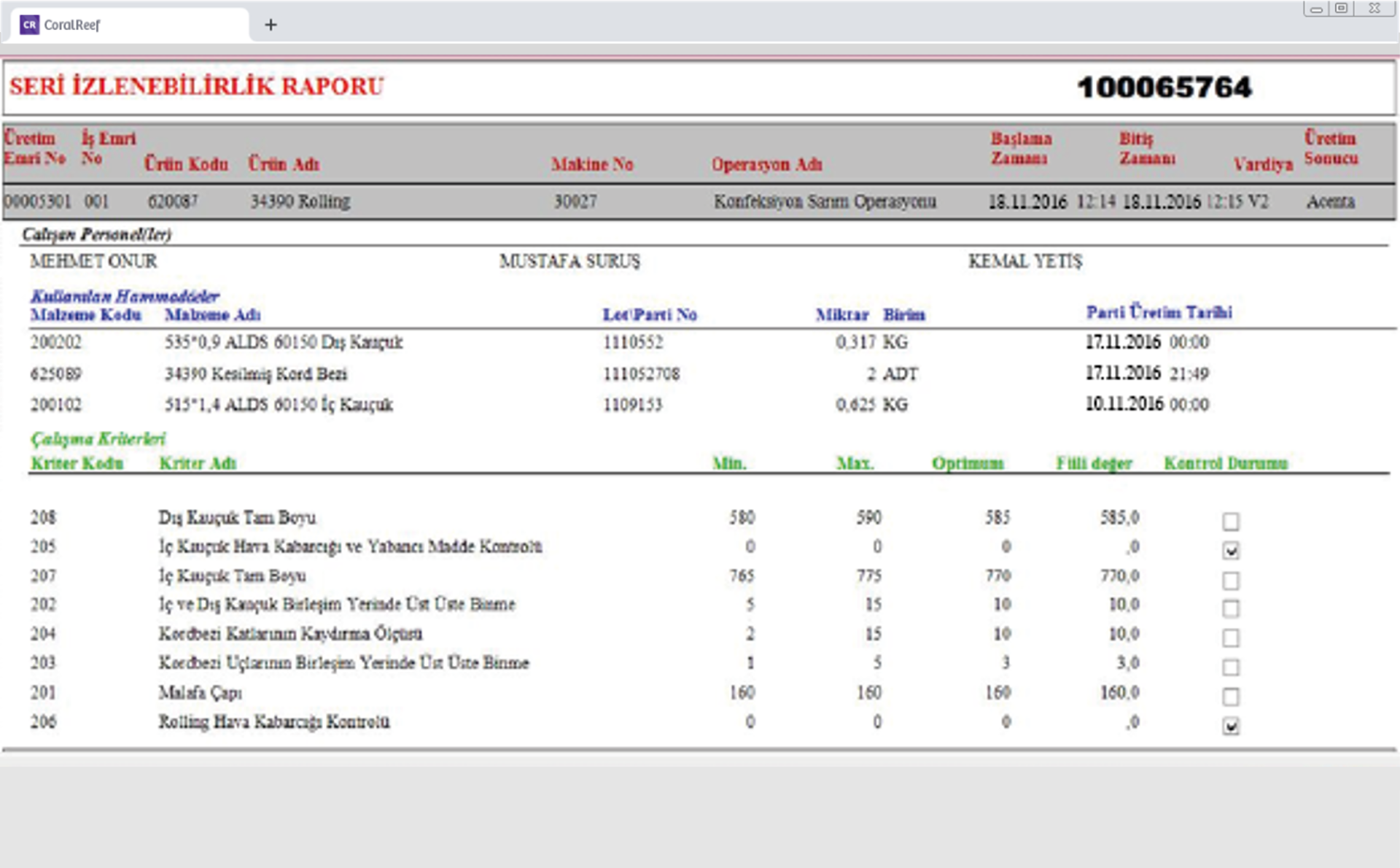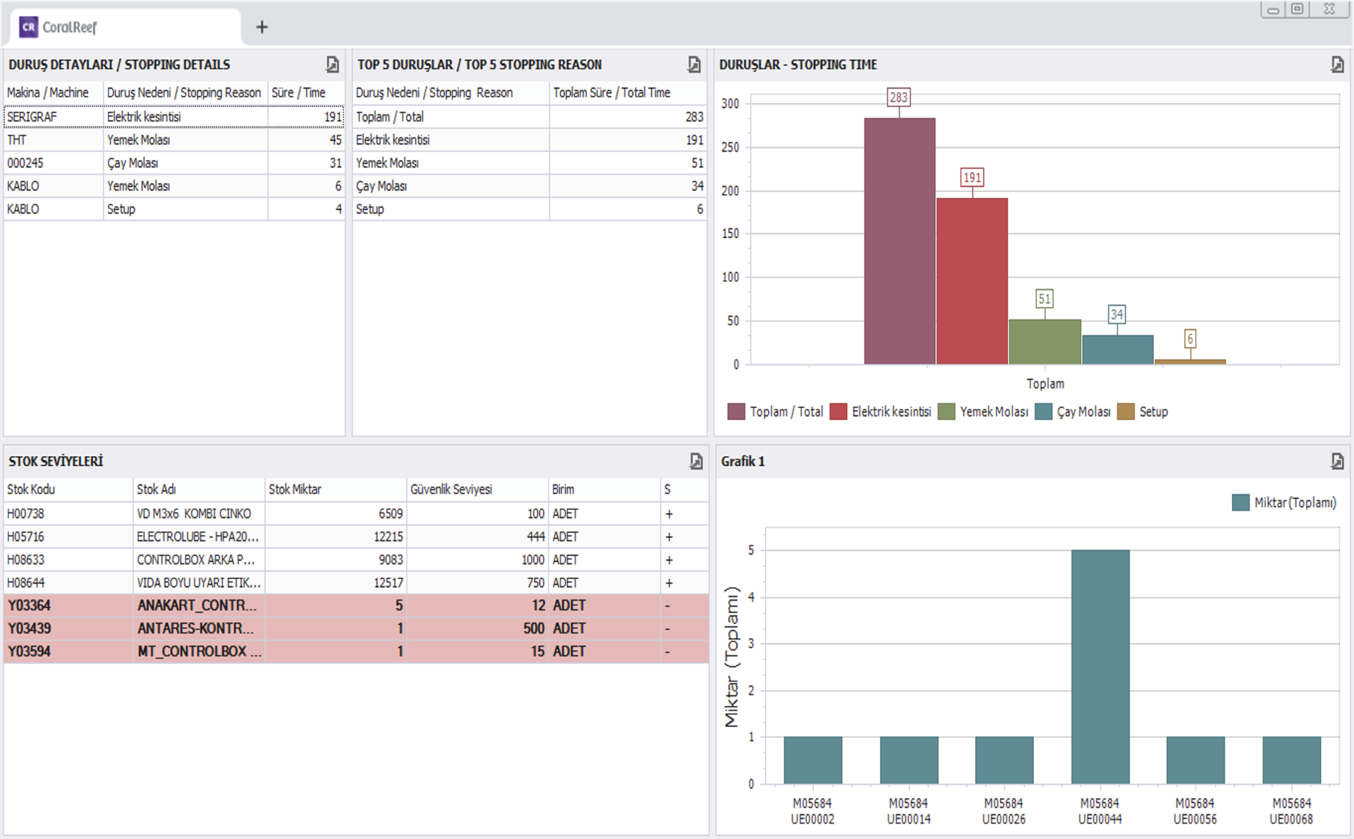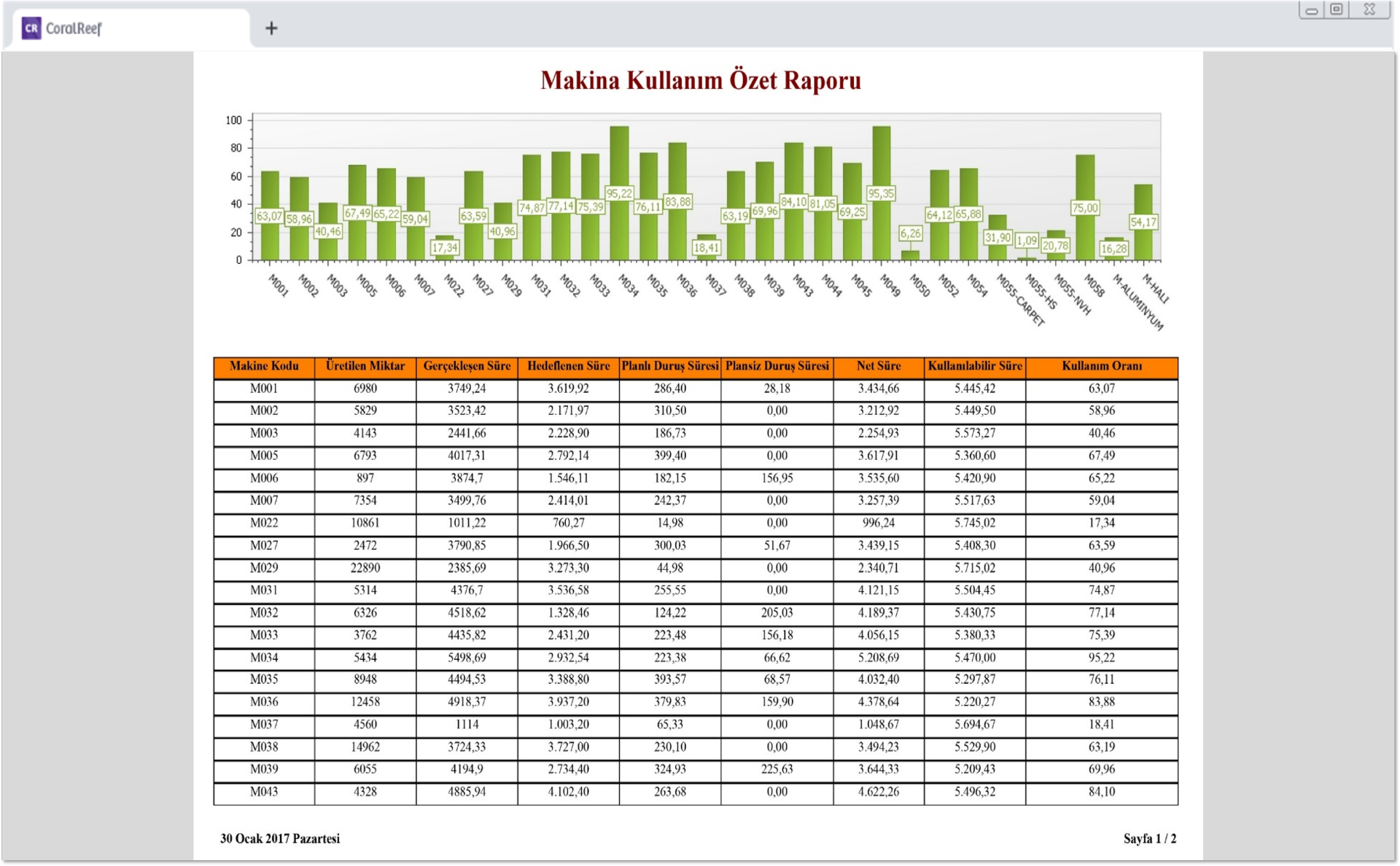 Raporlama Esnekliği: CoralReef, üretim performansı, kalite, makine verimliliği gibi konularda daha özelleştirilebilir ve ayrıntılı raporlama özellikleri sunar.