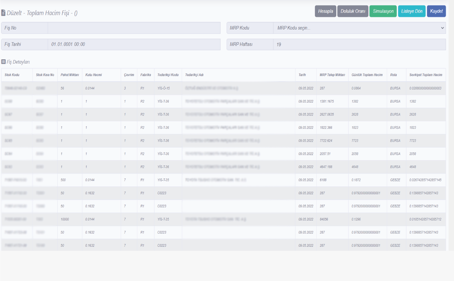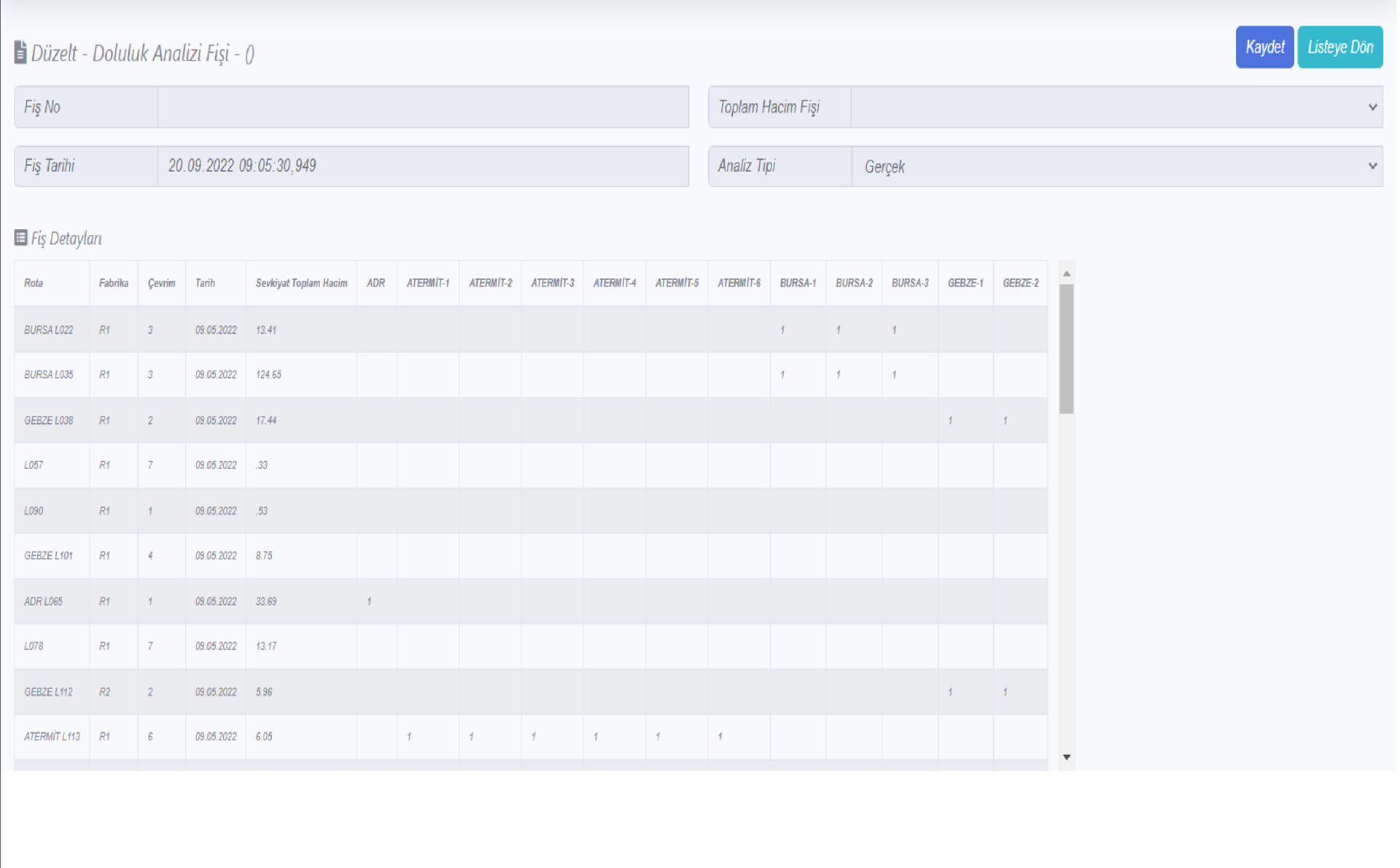 Hacim bilgileri ve doluluk analizleri CoralReef Milk Run projesi ile otomatik ve müdahale edilemez hale getirilmektedir.