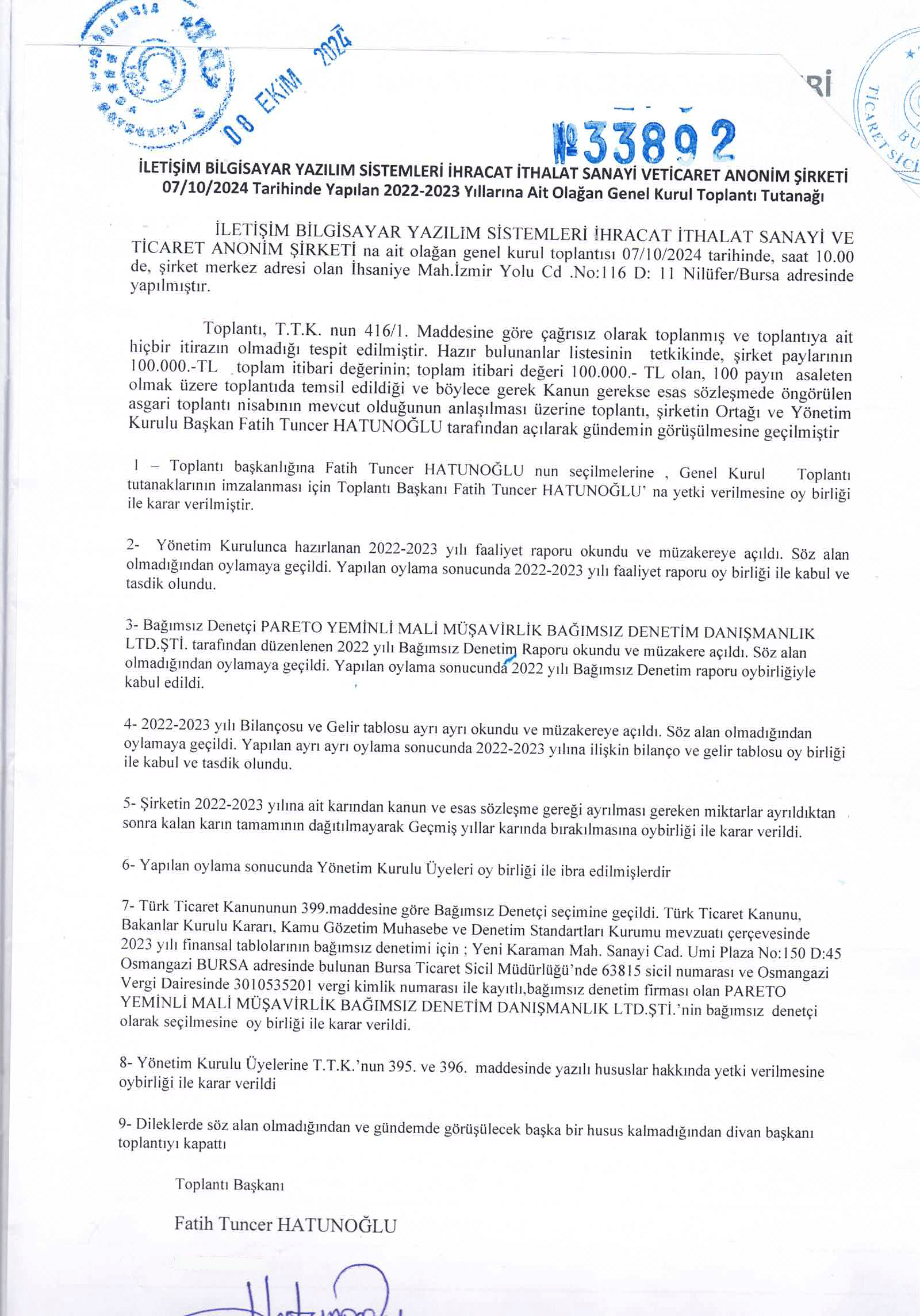Ticaret Unvanı | İletişim Bilgisayar Yazılım Sistemleri İhracat İthalat San. ve Tic. AŞ. |